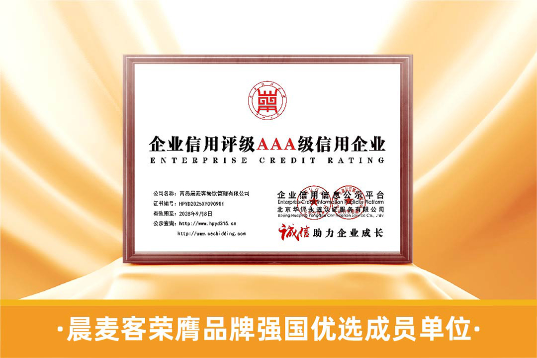 晨麦客凭借在经营管理、产品质量、服务水平及信用建设等方面的突出表现,一举斩获多项重量级荣誉称号,包括企业信用评级 AAA 级信用企业、诚信供应商、诚信经营示范单位、质量服务诚信单位、重服务守信用企业、重合同守信用企业、重质量守信用单位,以权威认证彰显品牌硬实力。 企业信用评级 AAA 级是国内企业信用评价的最高等级,代表企业履约能力强、信用风险极低;而诚信供应商、诚信经营示范单位等荣誉,则是对晨麦客在供应链合作、市场经营中坚守诚信原则的高度认可;质量服务诚信单位、重质量守信用单位等称号,更是直接印证了品牌在产品质量把控与客户服务保障上的扎实功底。这些荣誉并非单一维度的肯定,而是从信用、经营、质量、服务多方面,全面印证了晨麦客的企业责任感与市场竞争力。 对于晨麦客而言,此次荣获多项荣誉既是行业与市场对品牌过往发展的认可,更是未来持续精进的动力。未来,品牌将继续以诚信为基石、以质量为核心、以服务为支撑,为客户与合作伙伴创造更高价值,持续树立行业诚信经营与品质服务的标杆。